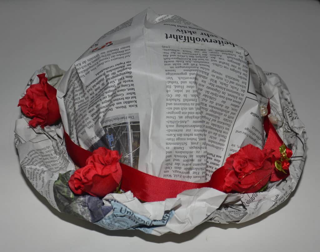 Es gibt immer wieder Unsicherheit beim Gestalten mit Zeitungen bezüglich möglicher allergener Stoffe in der Druckerschwärze. Alternativ kann das Angebot deshalb auch mit einem anderen Papier in ähnlicher Dicke und Größe umgesetzt werden.